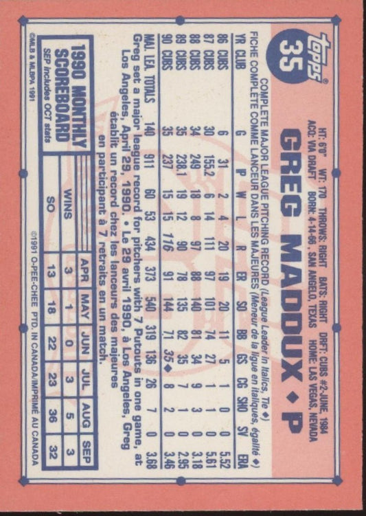 Greg Maddux 1991 Topps #35