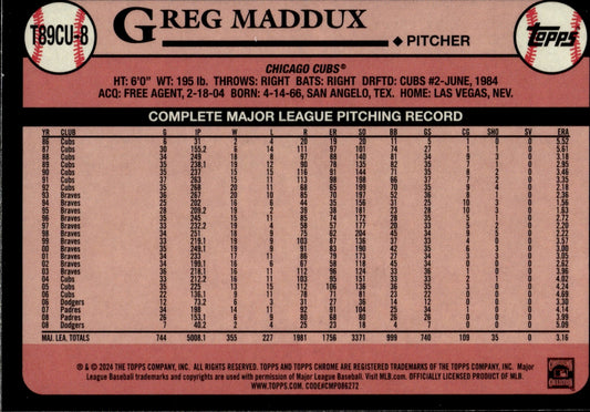 Greg Maddux 2024 Topps Chrome 35th Anniversary Mojo Refractor #T89CU-8