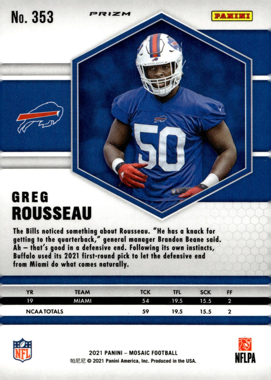 Greg Rousseau 2021 Panini Mosaic NFL Debut Prizm RC #259