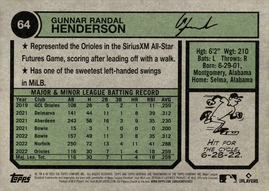 Gunnar Henderson 2023 Topps Heritage RC #64