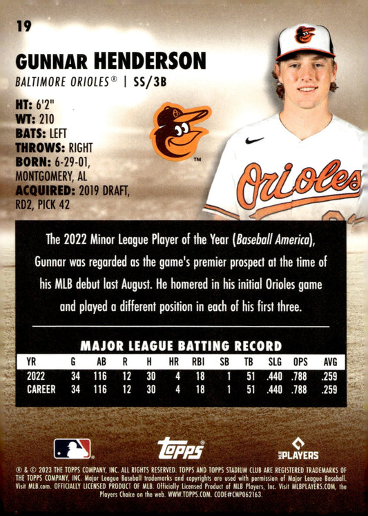 Gunnar Henderson 2023 Topps Stadium Club RC #19