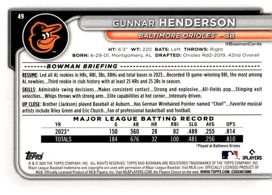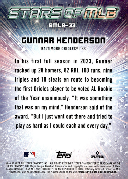 Gunnar Henderson 2024 Topps Series 1 Stars of MLB #SMLB-33 #2