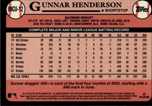 Gunnar Henderson 2024 Topps Chrome 35th Anniversary Refractor #89CU-12