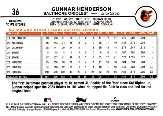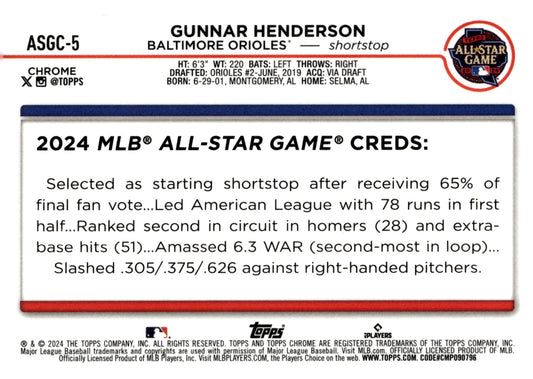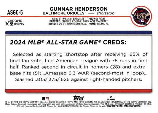 Gunnar Henderson 2024 Topps Chrome All Stag Game Refractor #ASGC-5 #1