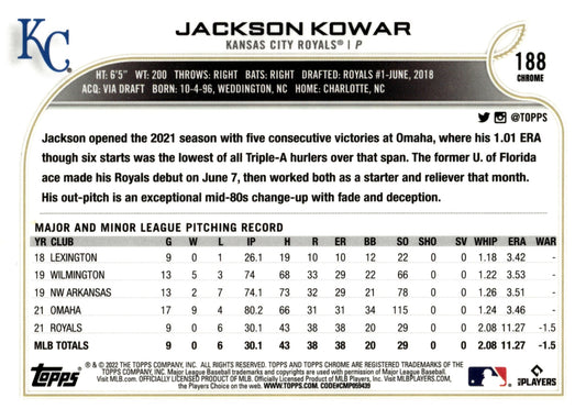 Jackson Kowar 2022 Topps Chrome Black & White Ray Wave Refractor RC #188