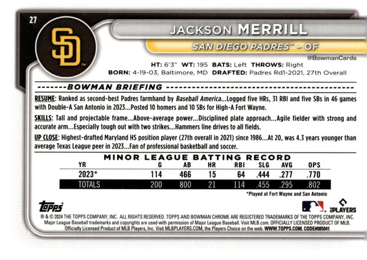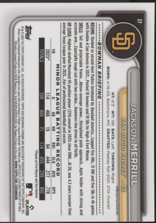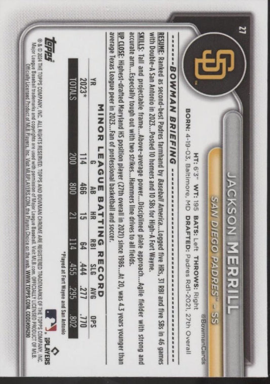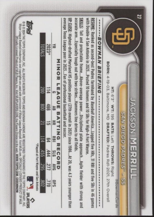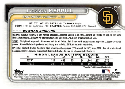 Jackson Merrill 2024 Bowman Chrome #BCP-145