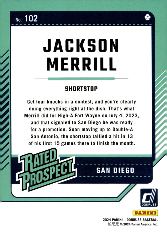 Jackson Merrill 2024 Panini Donruss Rated Prospect #102