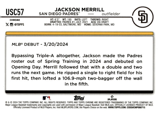 Jackson Merrill 2024 Topps Chrome RC #USC57 #2
