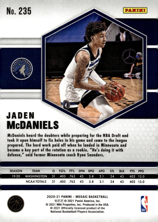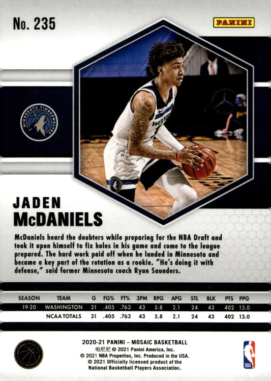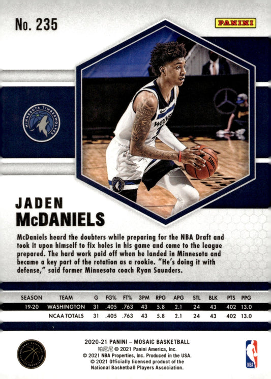Jaden McDaniels 2020-21 Panini Mosaic RC #235 #3