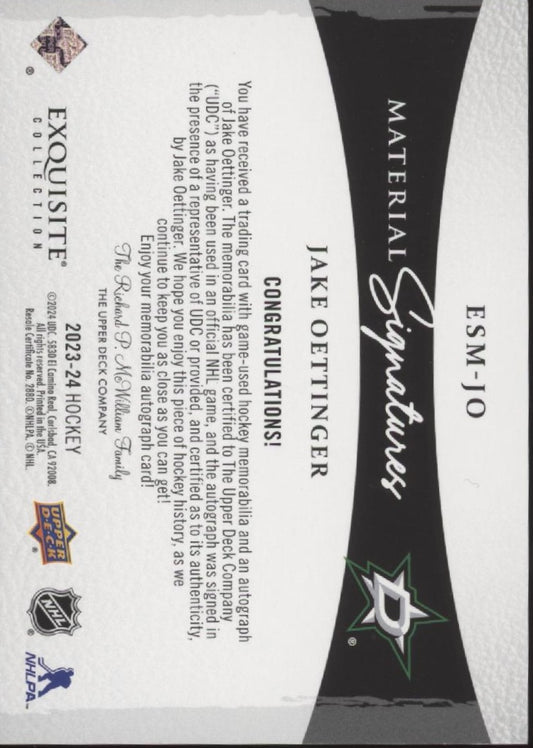 Jake Oettinger 2023-24 UD Exquisite Collection Material Signatures Auto 32/49