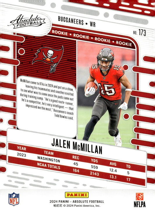 Jalen McMillan 2024 Panini Absolute Red Squares RC 137/499 #173