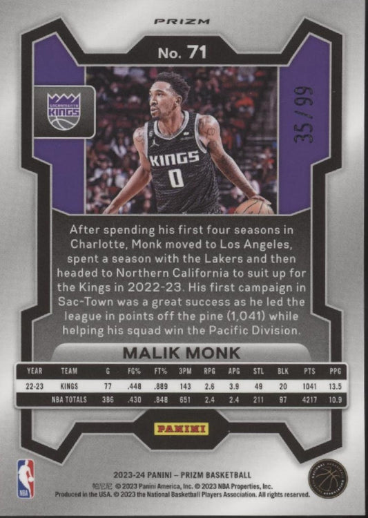 Malik Monk 2023-24 Panini Prizm Blue Seismic Prizm 35/99 #71