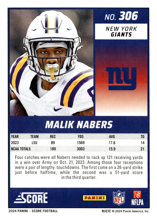 Malik Nabers 2024 Panini Donruss Rated Rookie RC #383 #2