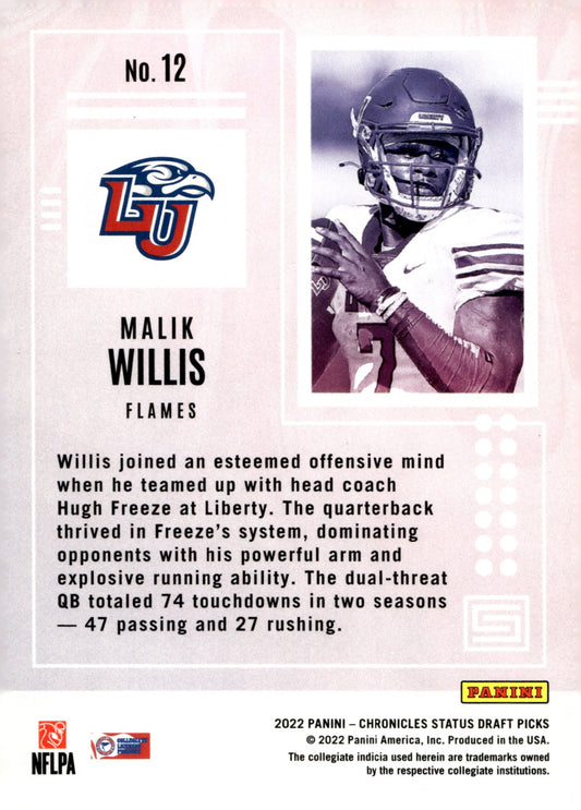 Malik Willis 2022 Panini Chronicles Status Draft Picks RC #12
