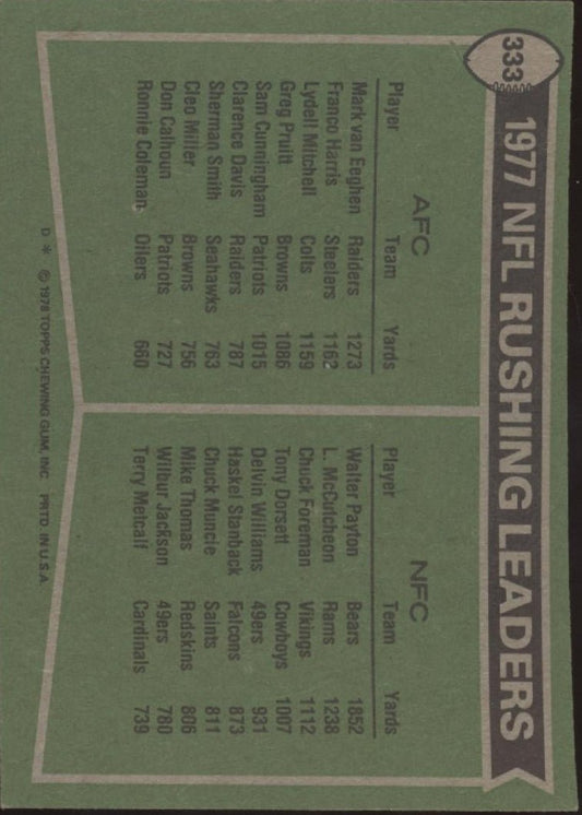 Mark Van Eeghen / Walter Payton 1978 Topps Rushing Leaders #333