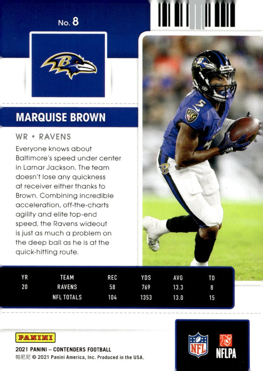 Marquise Brown 2021 Panini Contenders Season Ticket Purple 052/199 #8