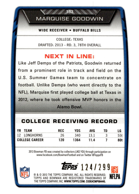 Marquise Goodwin 2013 Bowman Orange RC 124/299 #183