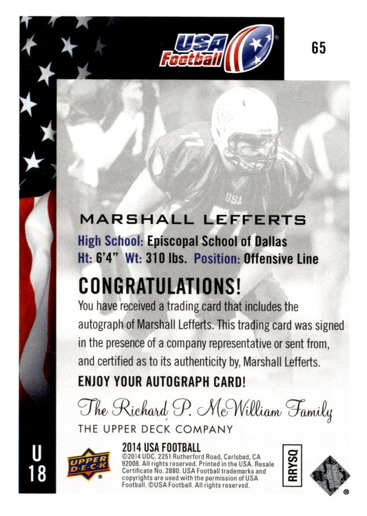 Marshall Lefferts 2014 Upper Deck USA Football Auto #65