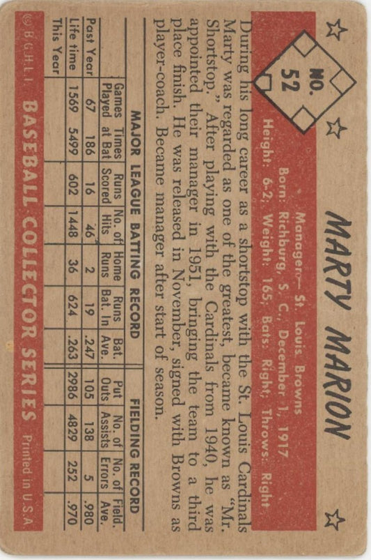 Marty Marion 1953 Bowman #52 St. Louis Browns VG-EX