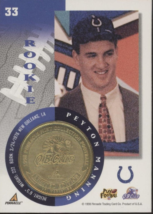 Peyton Manning 1998 Pinnacle Mint Collection RC #33