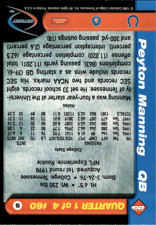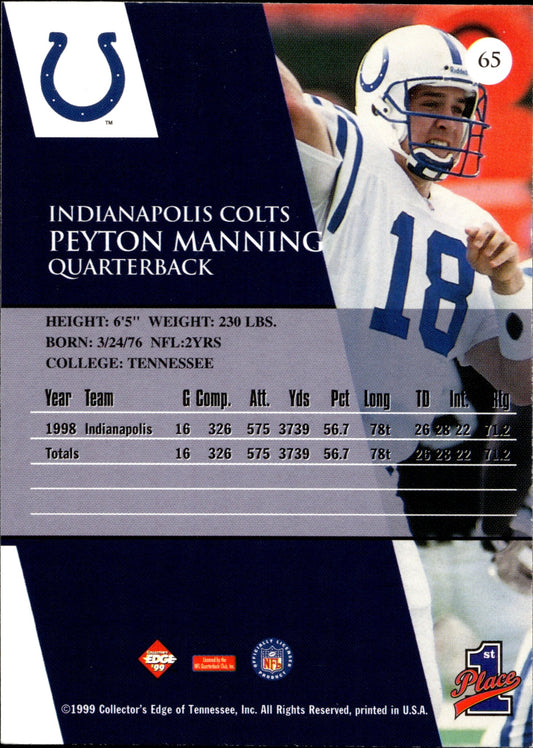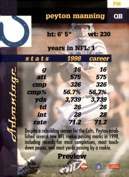 Peyton Manning 1999 Collector's Edge Fury #89 #1