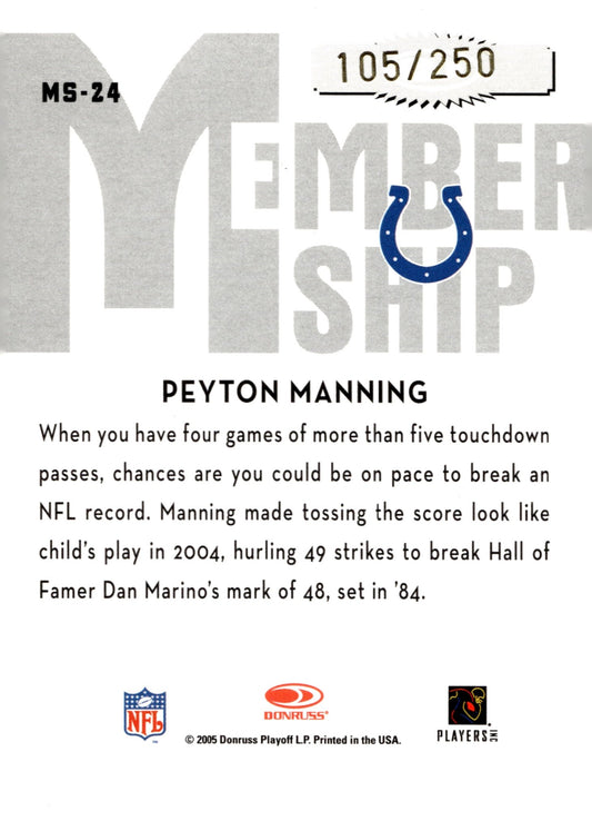 Peyton Manning 2005 Donruss Classics Membership 105/250 #MS-24