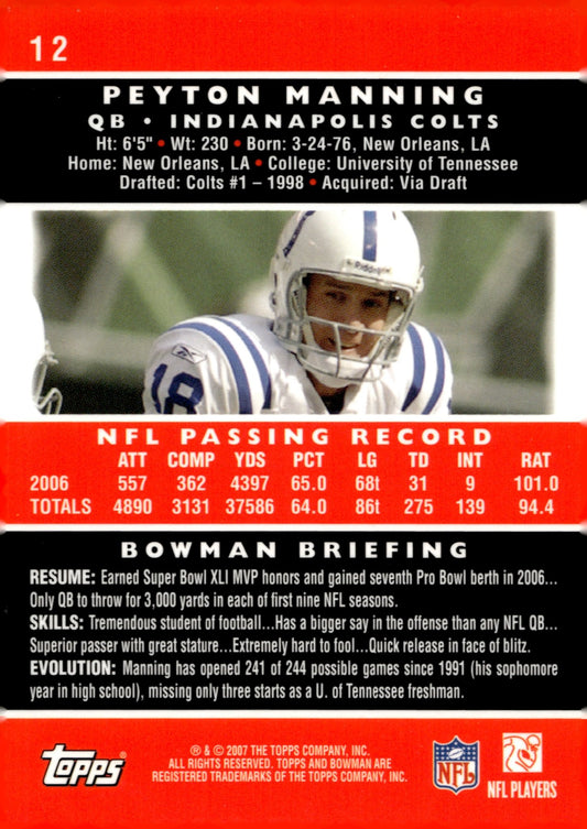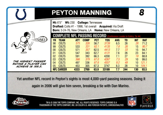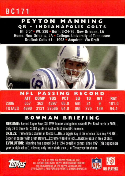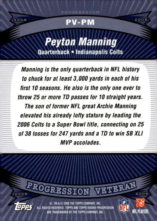 Peyton Manning 2008 Topps Rookie Progression Veteran #PV-PM