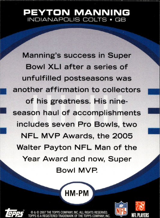 Peyton Manning 2007 Playoff Prestige Super Bowl Heroes #SBH-1