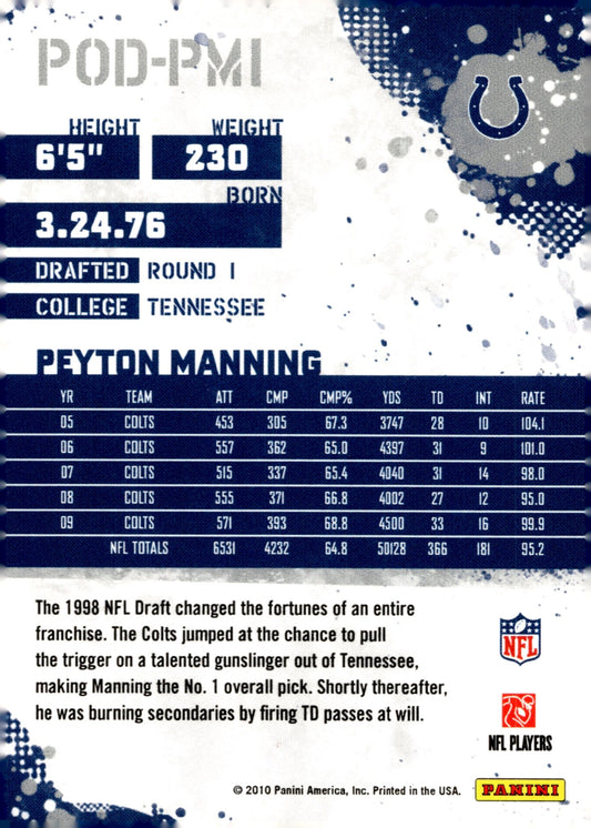 Peyton Manning 2010 Panini Player of the Day #POD-PM1