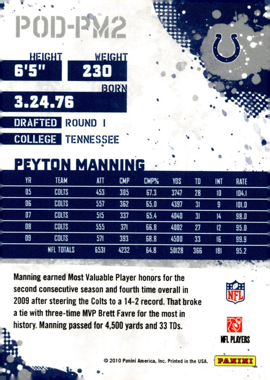 Peyton Manning 2010 Panini Player of the Day #POD-PM2