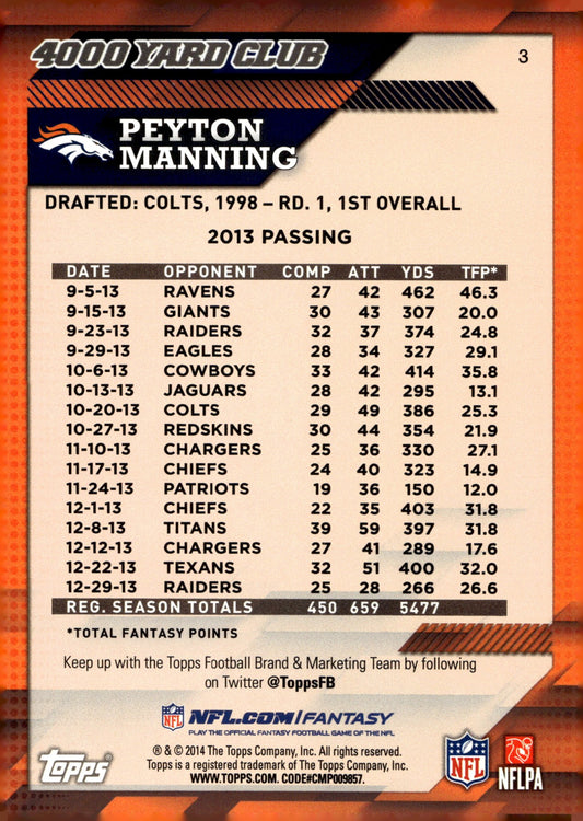 Peyton Manning 2014 Topps 4000 Yard Club #3