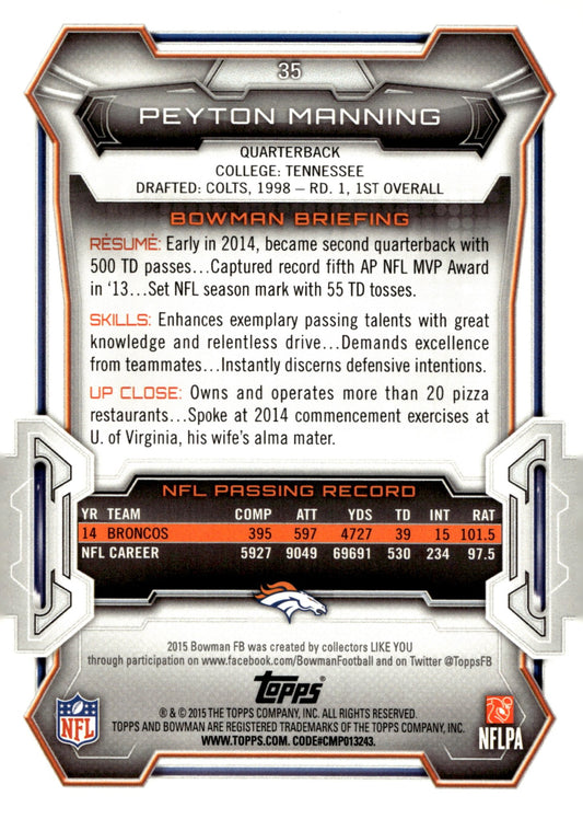 Peyton Manning 2015 Bowman Purple Border #35