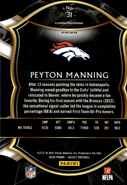Peyton Manning 2020 Panini Select Die-Cut Purple Prizm #31