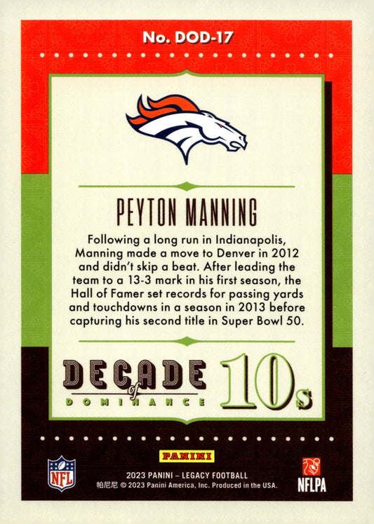 Peyton Manning 2023 Panini Legacy Decade of Dominance #DOD-17