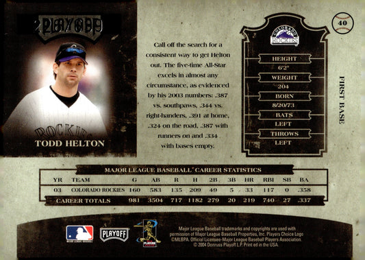 Todd Helton 2004 Playoff Prime Cuts 226/699 #40