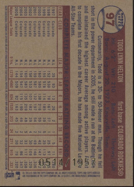 Todd Helton 2006 Topps Chrome Heritage 0514/1957 #97