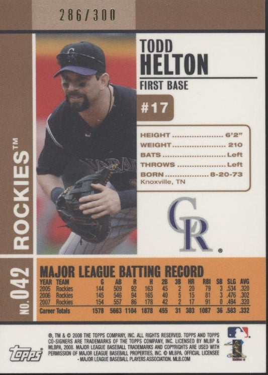 Todd Helton 2008 Topps Co-Signers 286/300 #042