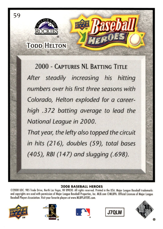 Todd Helton 2009 Upper Deck A Piece of History Franchise History #FH-HE