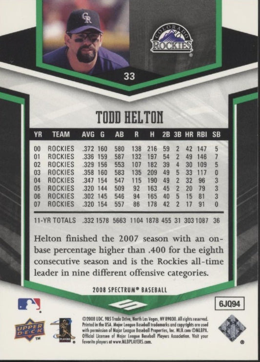 Todd Helton 2008 Upper Deck Spectrum Green 124/199 #33