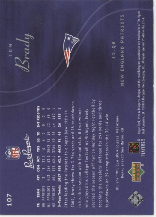 Tom Brady 2003 Upper Deck Pros & Prospects #107