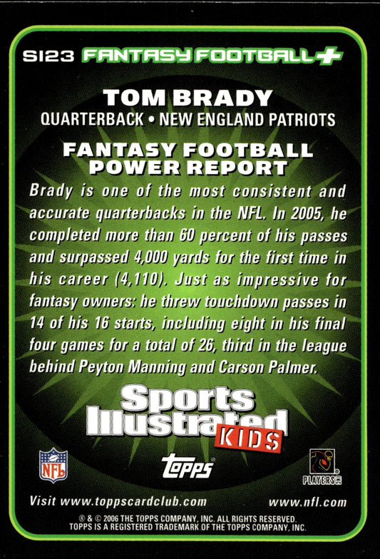 Tom Brady 2006 Topps Sports Illustrated Kids Fantasy Football+ #S123 #2