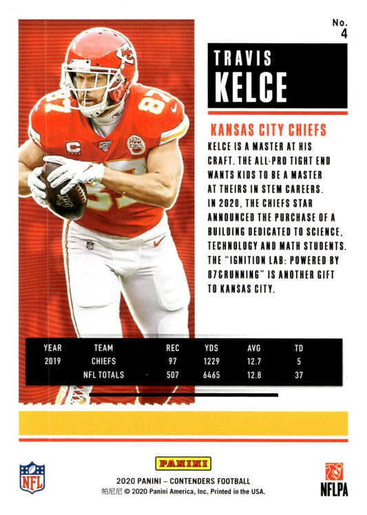 Travis Kelce 2020 Panini Contenders Season Ticket Game 30 #4