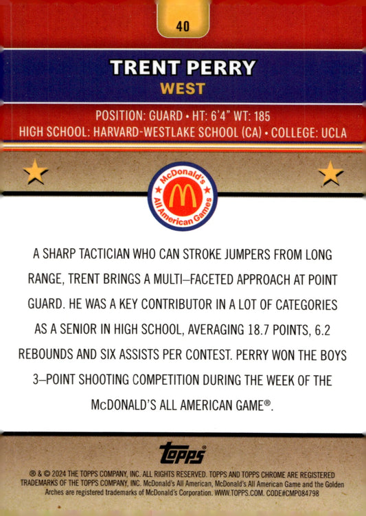Trent Perry 2024 Topps Chrome McDonald's All American Purple Refractor 138/150