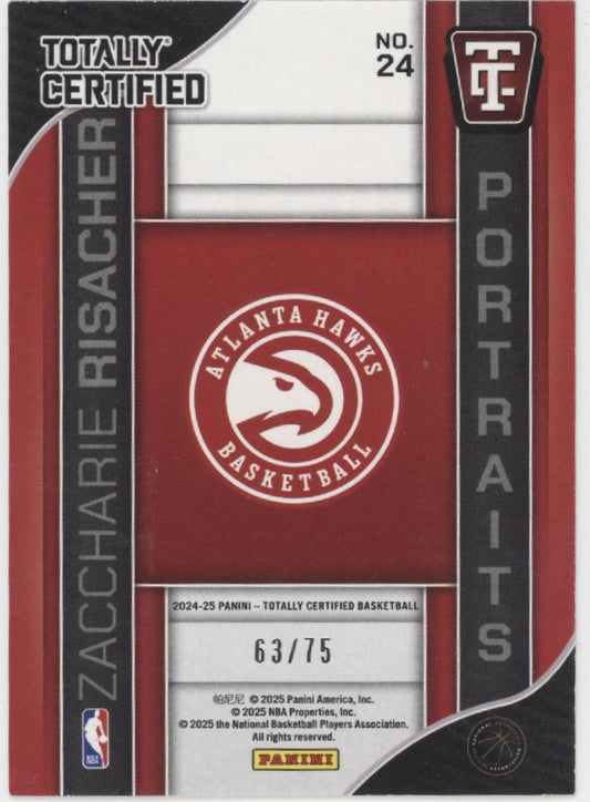 Zaccharie Risacher 2024-25 Panini Totally Certified Portraits RC 63/75 #24