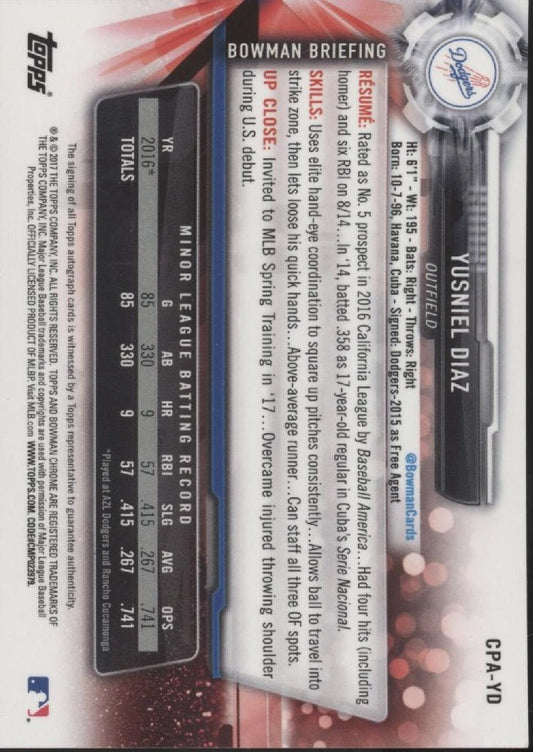 Yusniel Diaz 2017 Bowman Chrome Auto #CPA-YD