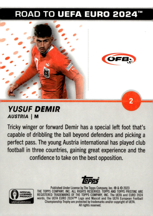 Yusuf Demir 2023-24 Topps Pristine Road to UEFA Euro Green Refractor 008/125