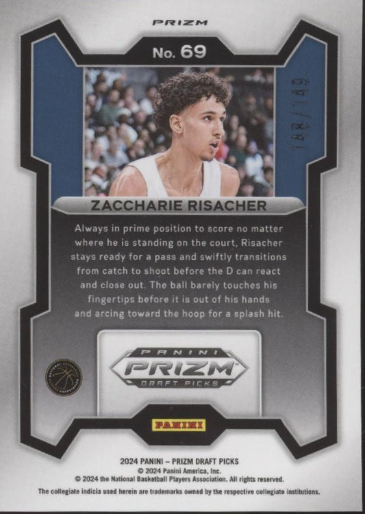 Zaccharie Risacher 2024 Panini Prizm Draft Picks Blue Ray Wave Prizm RC 148/149