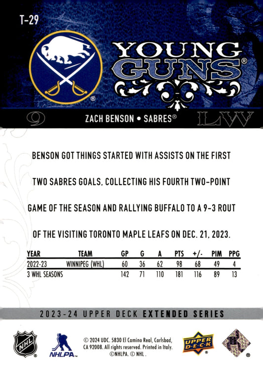 Zach Benson 2023-24 Upper Deck Extended Series Young Guns RC #T-29