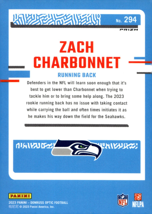 Zach Charbonnet 2023 Panini Donruss Optic Rated Rookie Blue Prism Prizm RC #294