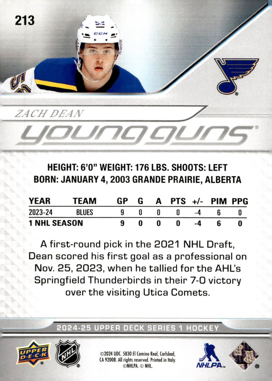 Zach Dean 2024-25 Upper Deck Series 1 Young Guns RC #213
